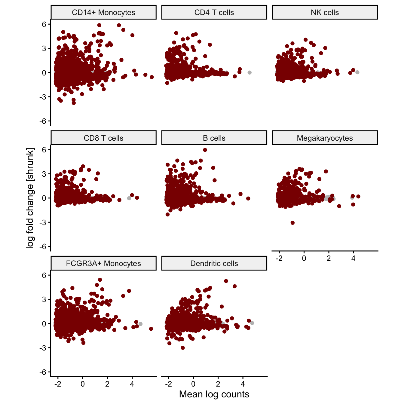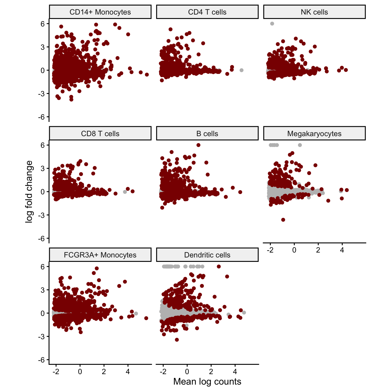 estimated across 8 cell clusters using a negative binomial mixed model