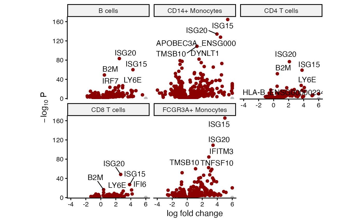 Volcano plot for each cell type